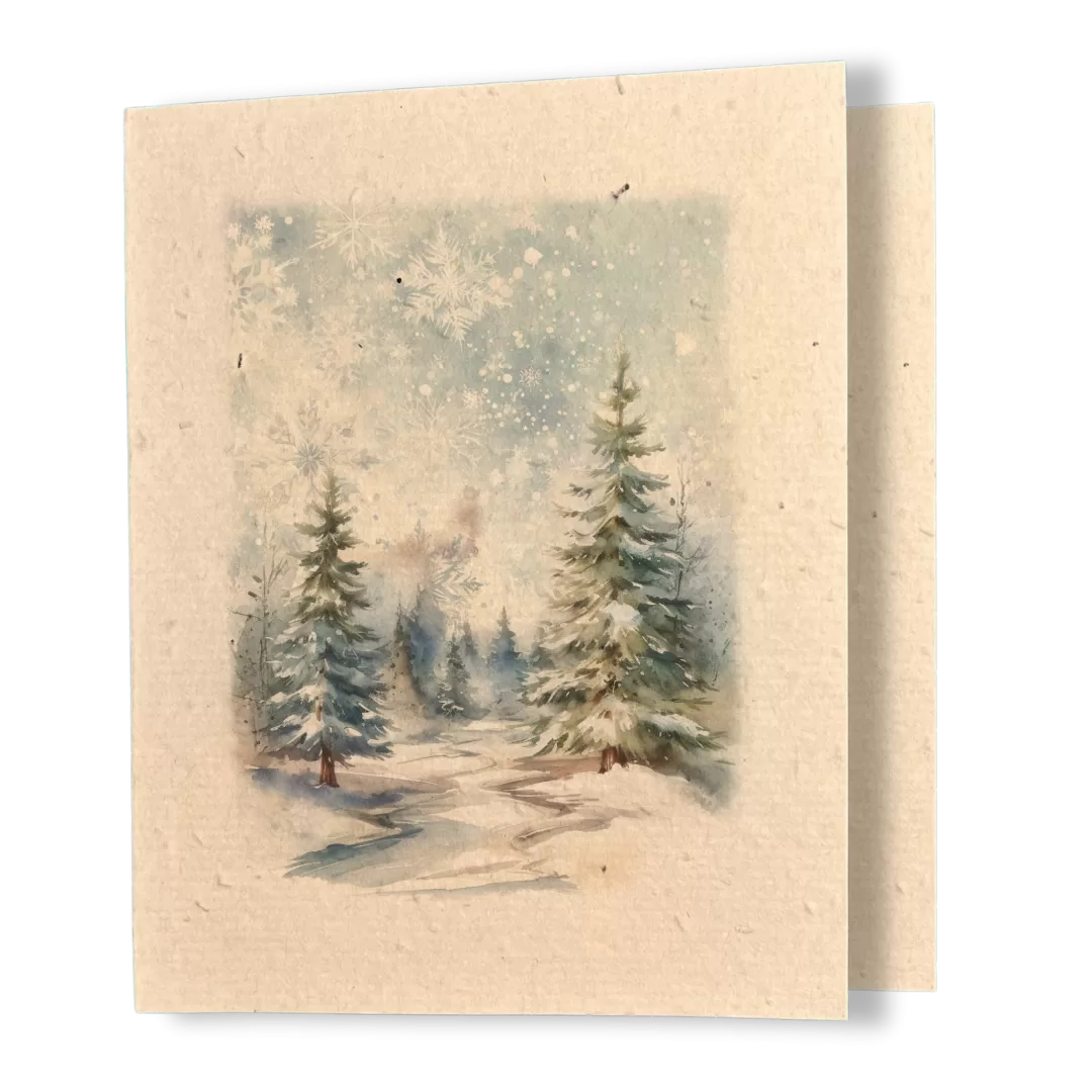 Capture the quiet beauty of winter with our “Fresh Snow” plantable holiday card. Featuring a soft, elegant watercolour scene of freshly fallen snow in the woods, this card brings a sense of calm and seasonal wonder to anyone who receives it. Perfect for nature lovers, minimalists, and anyone who appreciates a peaceful, wintery design.