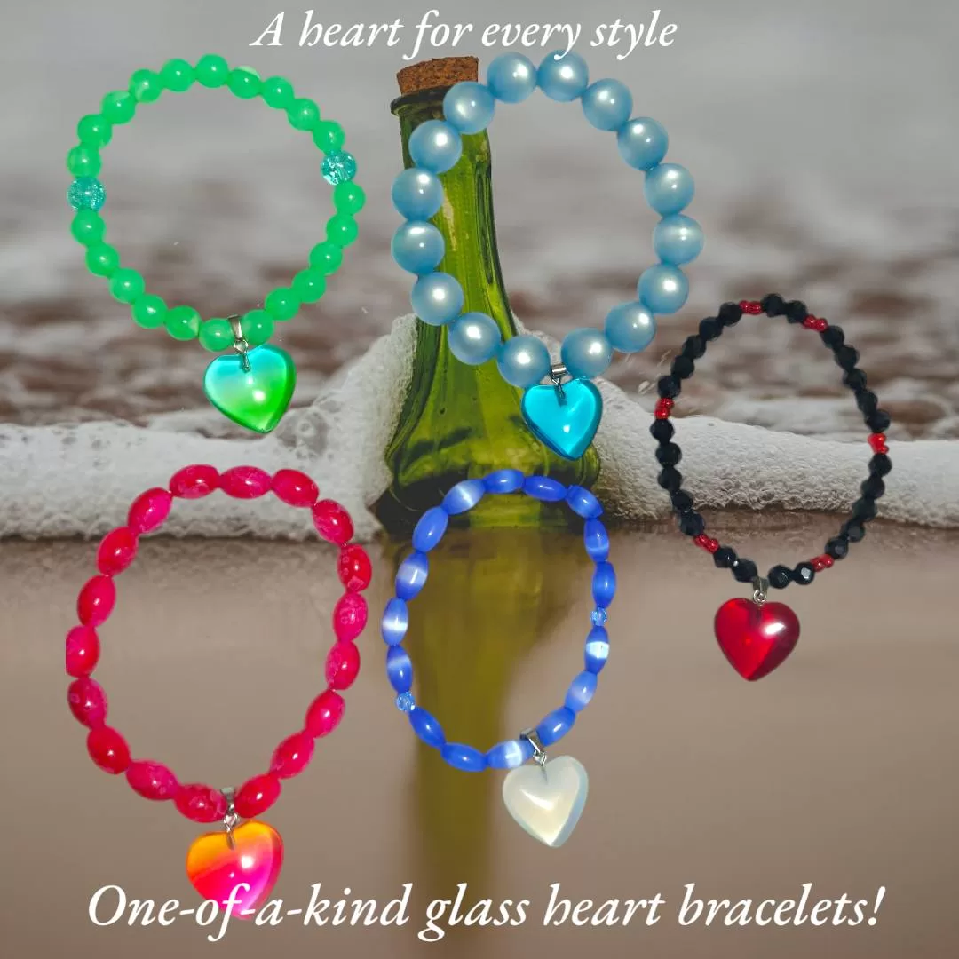 Unique Heart of Glass Charm Bracelets from the Love Buss Collection – Handcrafted with Love!