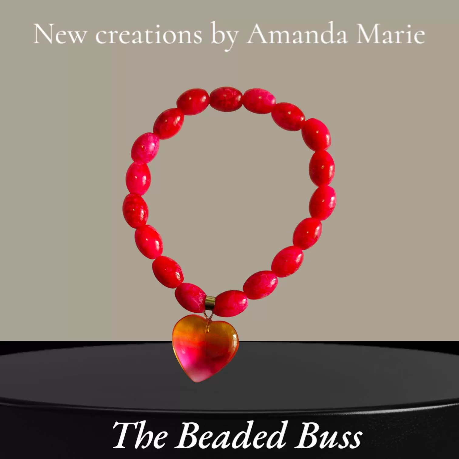 Fall in love with my stunning fuchsia handcrafted Heart of Glass Charm Bracelet from the Love Buss Collection , each piece a one-of-a-kind treasure!