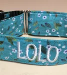 Leash – Matching leashes are not available for these collars. However, you may be interested in a plain leash to match the webbing on the collar. Click here